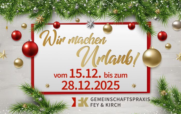 Vom 15.12. bis einschließlich 28.12.2025 bleibt unsere Praxis geschlossen.